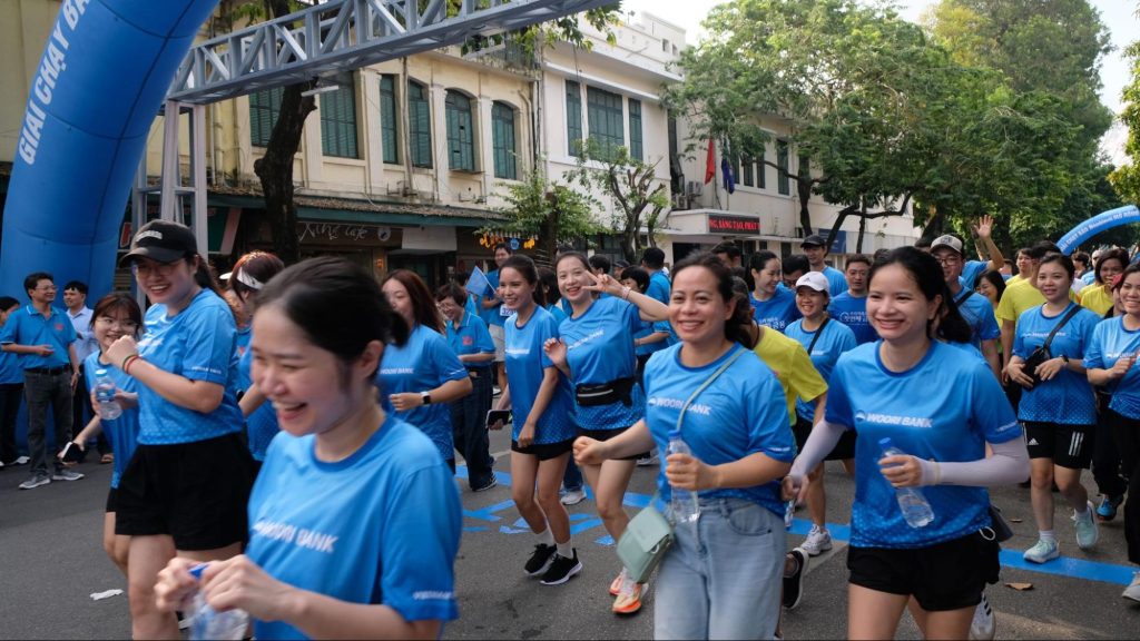 9월 29일 우리은행 임직원들이 제 49회 하노이모이 평화 마라톤 대회 참여를 위해 호안끼엠 여행자거리에 모였다.