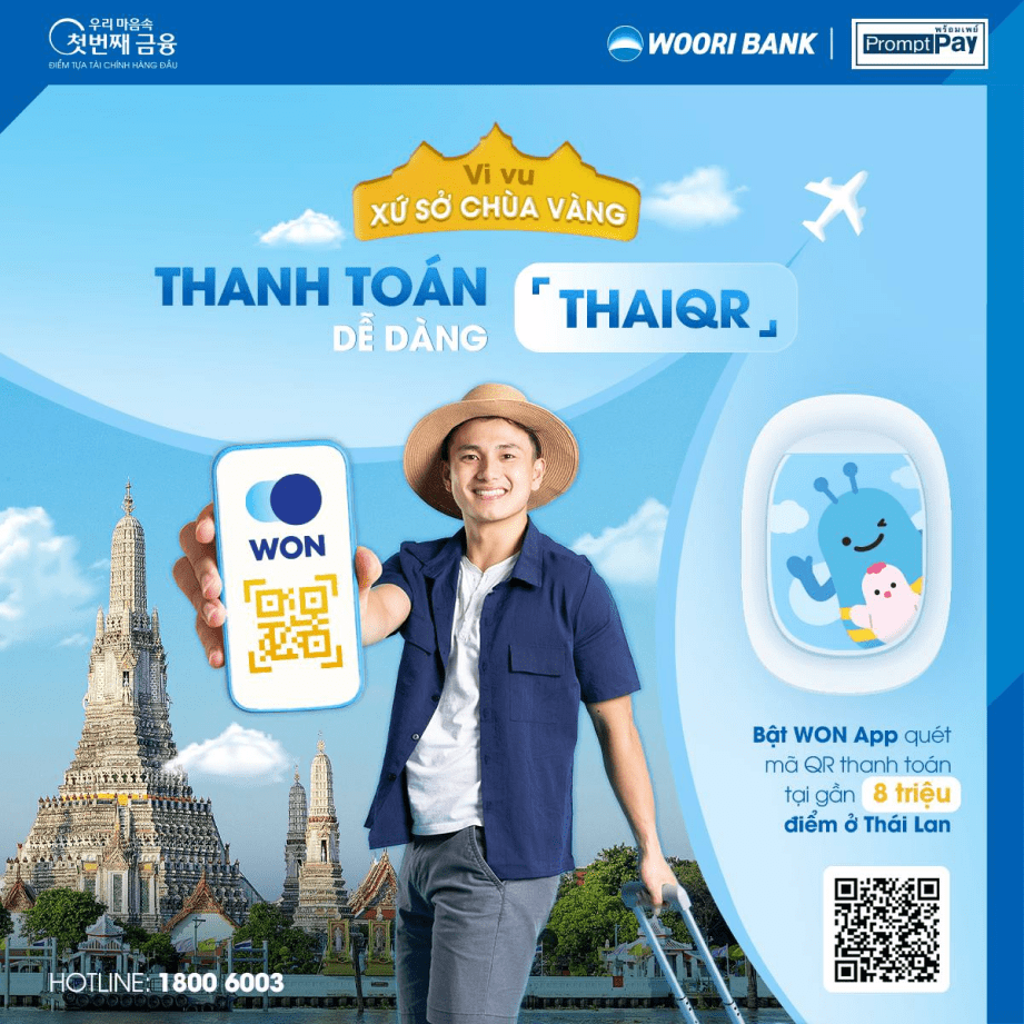 ThaiQR 서비스 등록 후 우리은행에서 베트남 동으로 입출금 계좌를 개설한 고객은 WON 앱으로 태국 내 약 800만 개의 가맹점에서 QR 코드를 스캔하여 상품과 서비스를 이용할 수 있다.