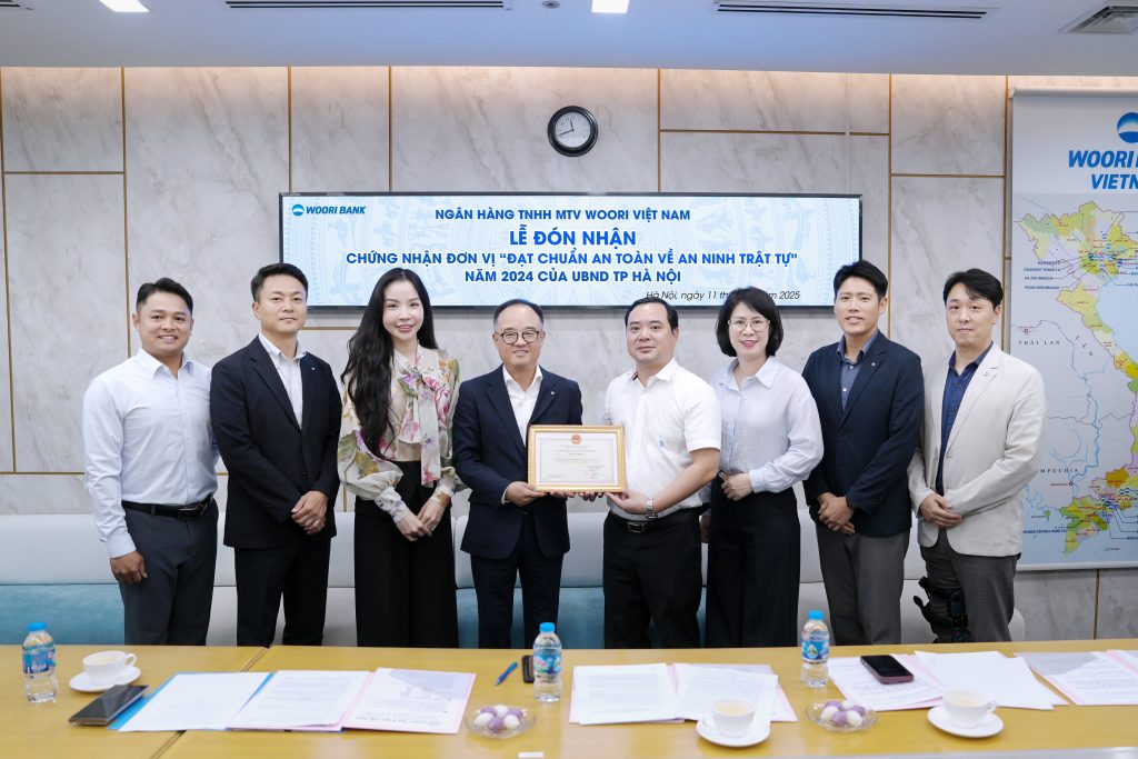 Ngày 11/06/2025, Phòng An ninh Kinh tế – Công an TP Hà Nội đã tổ chức buổi làm việc và trao Giấy chứng nhận “Đơn vị đạt chuẩn an toàn về an ninh trật tự” năm 2024 cho Ngân hàng TNHH MTV Woori Việt Nam. Đặc biệt, Ngân hàng Woori Việt Nam là ngân hàng nước ngoài duy nhất vinh dự được xướng tên trong danh sách này.