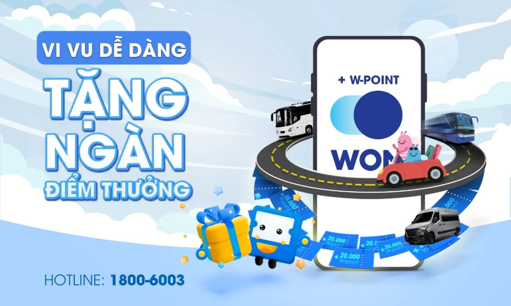 Cụ thể, chương trình “Vi vu dễ dàng – Tặng ngàn điểm thưởng” giúp khách hàng tiết kiệm đến 100.000 đồng khi đặt vé xe trên WON App. Theo đó, khách hàng sẽ được tặng 20.000 W-Point cho mỗi giao dịch mua vé xe có giá trị từ 100.000 đồng trên WON App, áp dụng tối đa cho 5 giao dịch đầu tiên. Số điểm thưởng này có thể quy đổi thành tiền vào tài khoản theo quy ước 1 W-Point bằng 1 đồng.