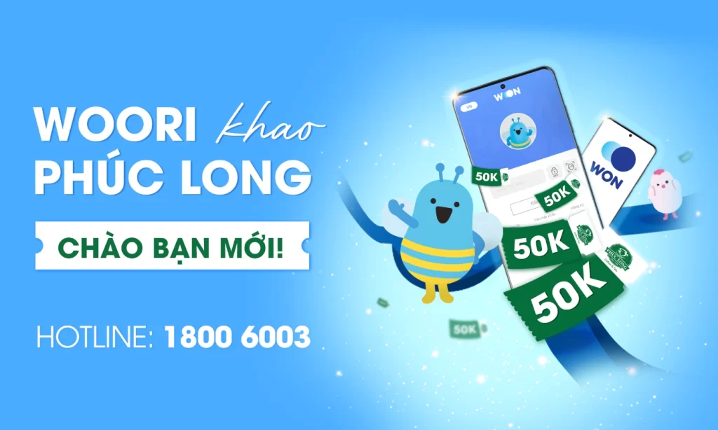 Chương trình “Woori khao Phúc Long chào bạn mới!” tặng e-Voucher Phúc Long trị giá 50.000 đồng cho khách hàng mới mở tài khoản thanh toán của Woori Bank, tải ứng dụng Woori WON Vietnam và đăng nhập trên ứng dụng thành công. Khách hàng có thể lựa chọn một trong hai cách: Mở tài khoản thanh toán tại chi nhánh của Ngân hàng Woori hoặc mở tài khoản thanh toán ngay trên WON App bằng định danh trực tuyến (e-KYC) (khách hàng tải ứng dụng Woori WON Vietnam tại đây để mở tài khoản).